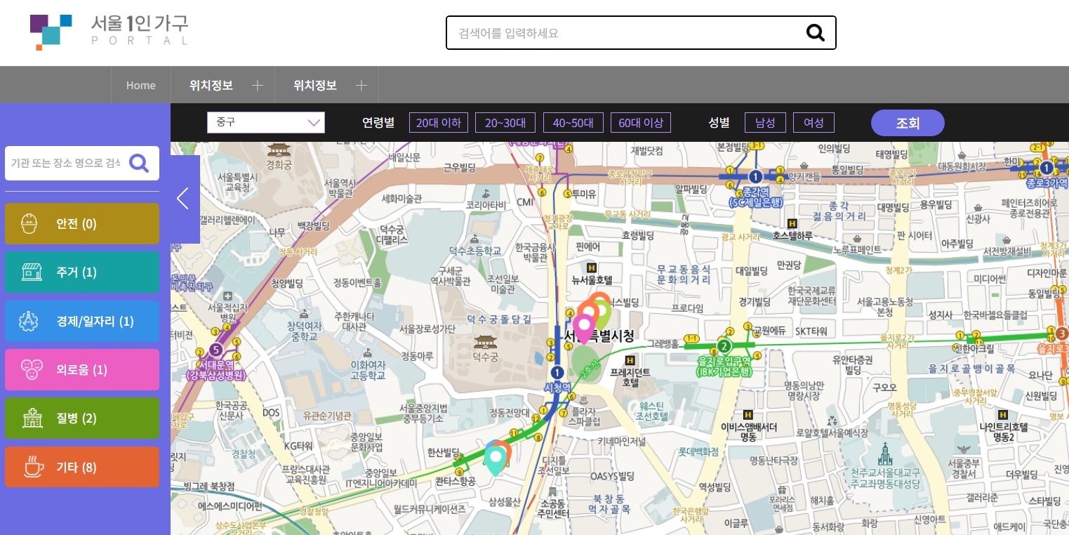 1인가구 커뮤니티, 지원센터 뿐만아니라 각종 유과기관을 검색할 수 있습니다.