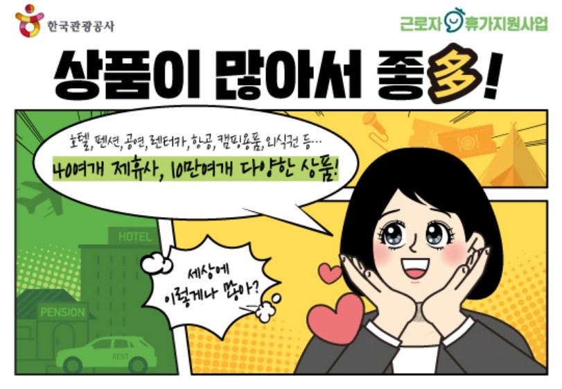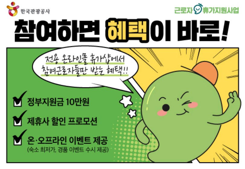 이 사업은 모두 무료가 아니라 정부, 기업, 근로자가 공동으로 비용을 조성한 후 총 40만원이 적립되면 관광상품으로 구성된 사업 전용 온라인몰에서 사용이 가능합니다.