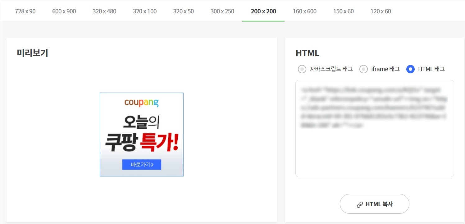 쿠팡 파트너스 배너 소스