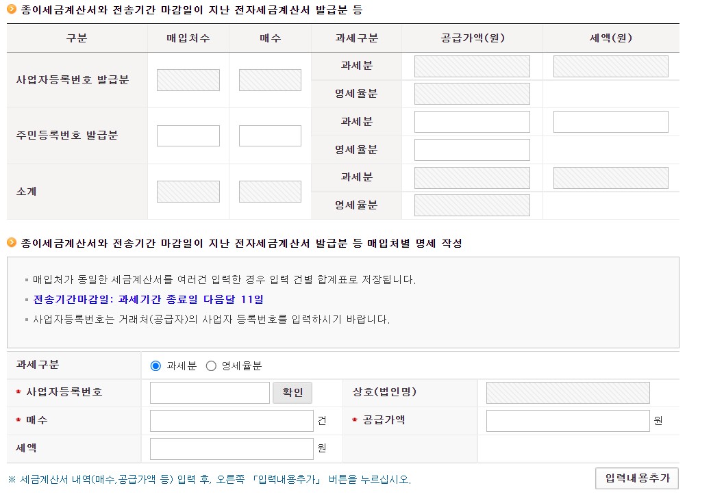 아직도 '종이계산서'발행을 하시는 분들이 있으실 텐데요~ 여기에 입력하는 란이 있으니 수기로 입력하여서 추가하시면 됩니다.